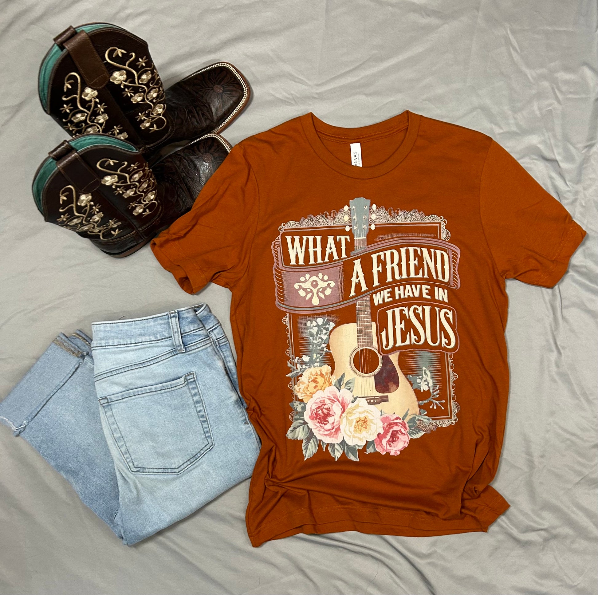 "What a Friend We Have in Jesus" Vintage Cowgirl Aesthetic Christian Tshirt Bella+Canvas